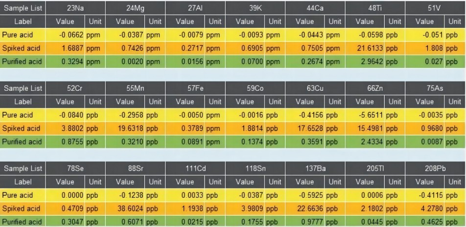 OWV ensures that the used acid is drained directly from the system so there is no reflux into the acid reservoir risking contamination. In traditional techniques, the waste acid will repeatedly reflux into the acid reservoir and evaporate. As a result, the waste acid constantly contaminates the pure acid. The resulting vapor becomes dirtier and the cleaning efficiency worsens. Consequently, even with trace metal grade pure acid only ppb-level cleaning can be achieved.
